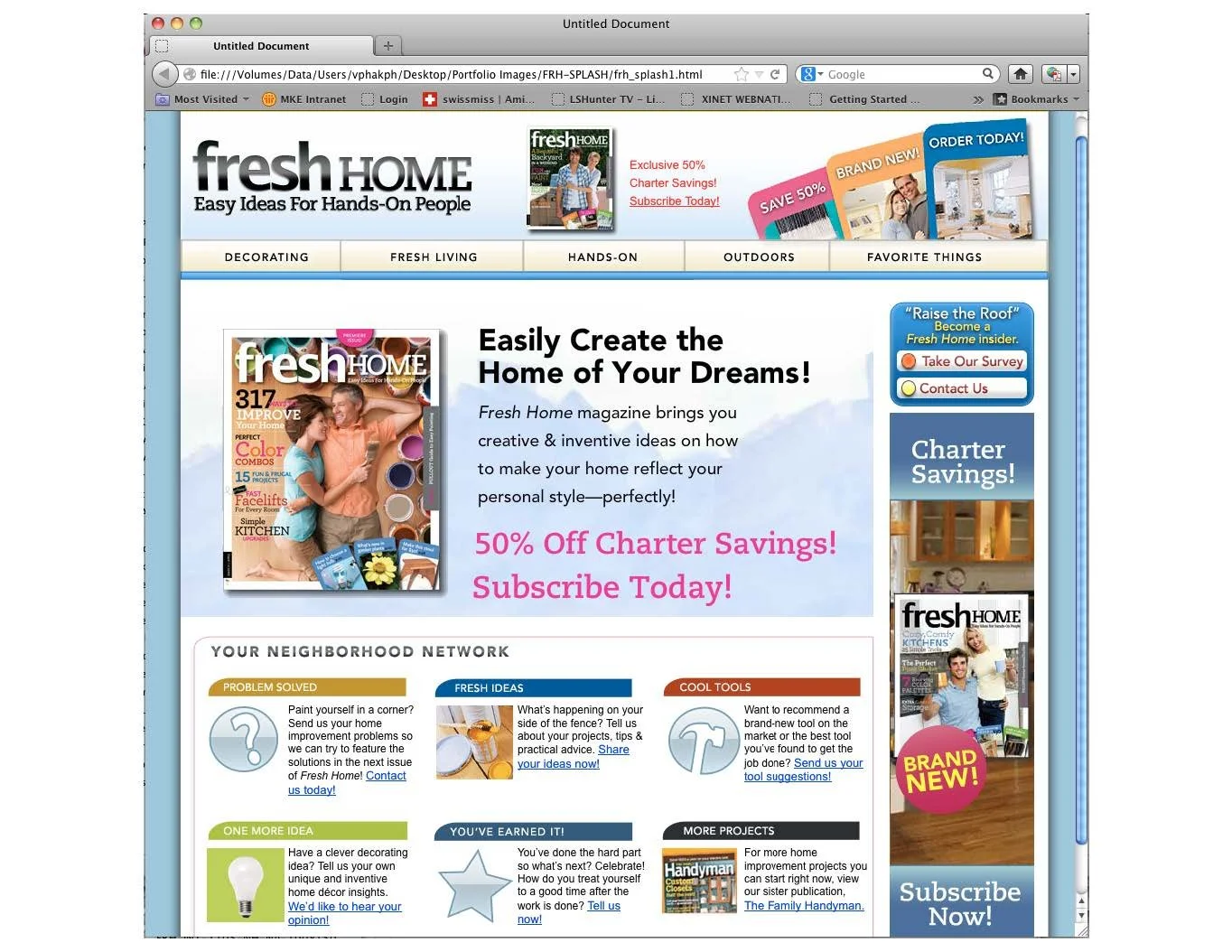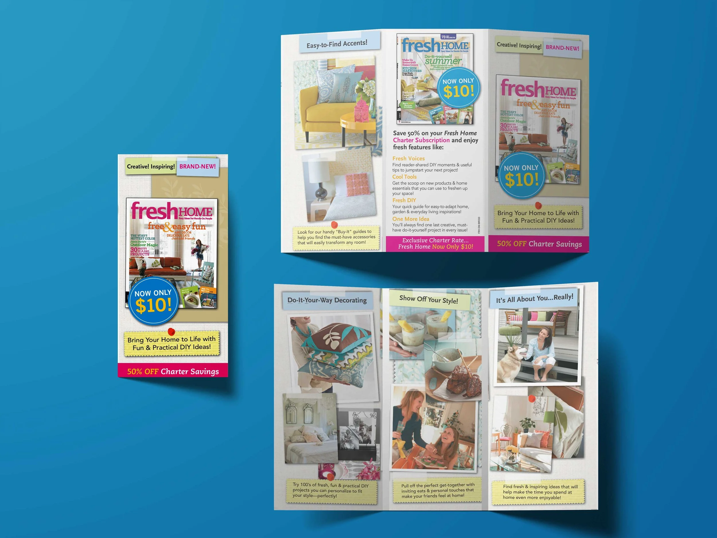 Fresh Home was a DIY decorating magazine that showed people how to upgrade their space easily & affordably. I concepted, wrote and executed the launch campaign for this title, working on everything from splash pages to direct mail packages, emails, ads & self mailers.