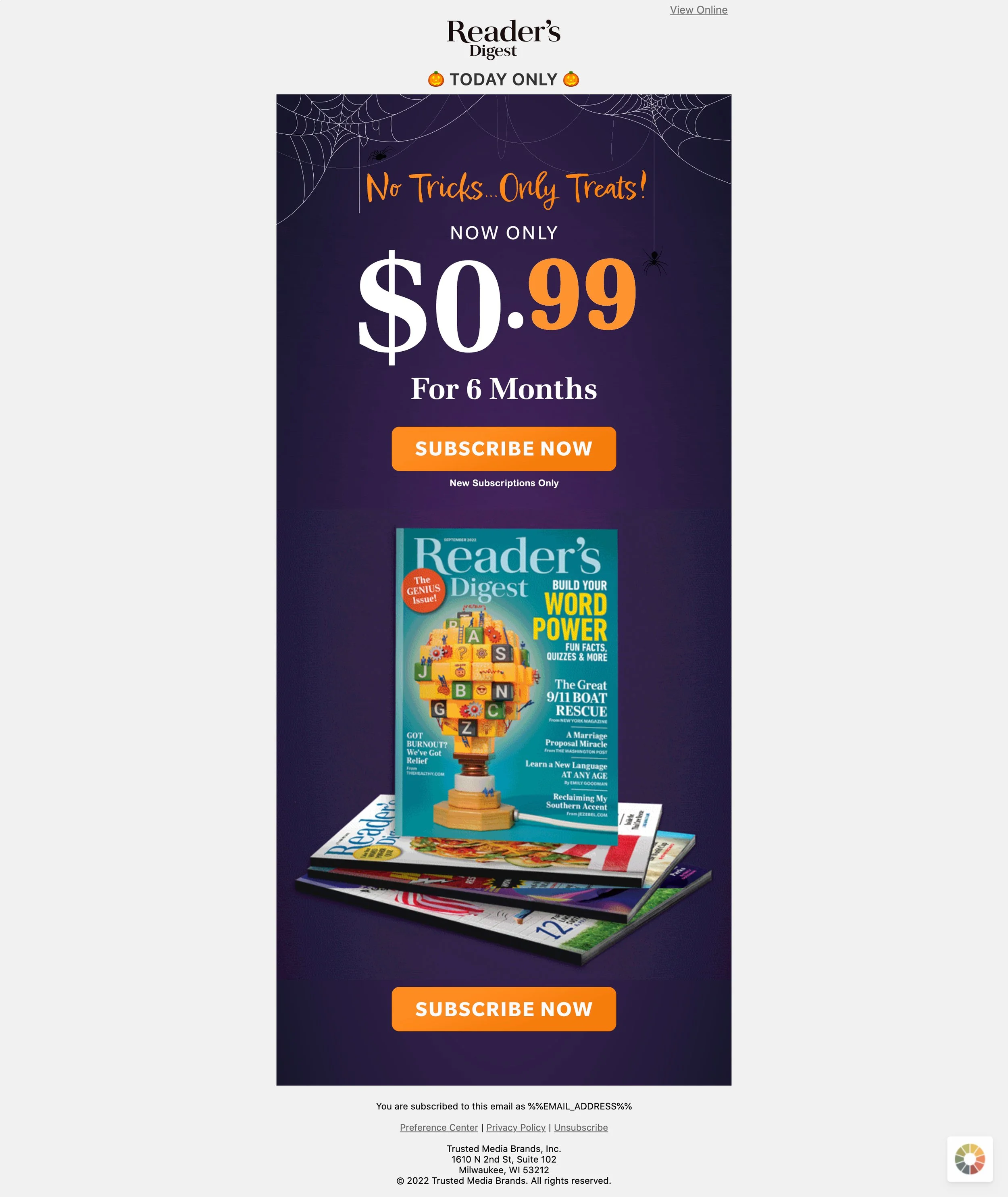 TODAY ONLY! Enjoy 6 months of Reader’s Digest magazine—America’s favorite source for trusted advice—for only $0.99. Subscribe now!