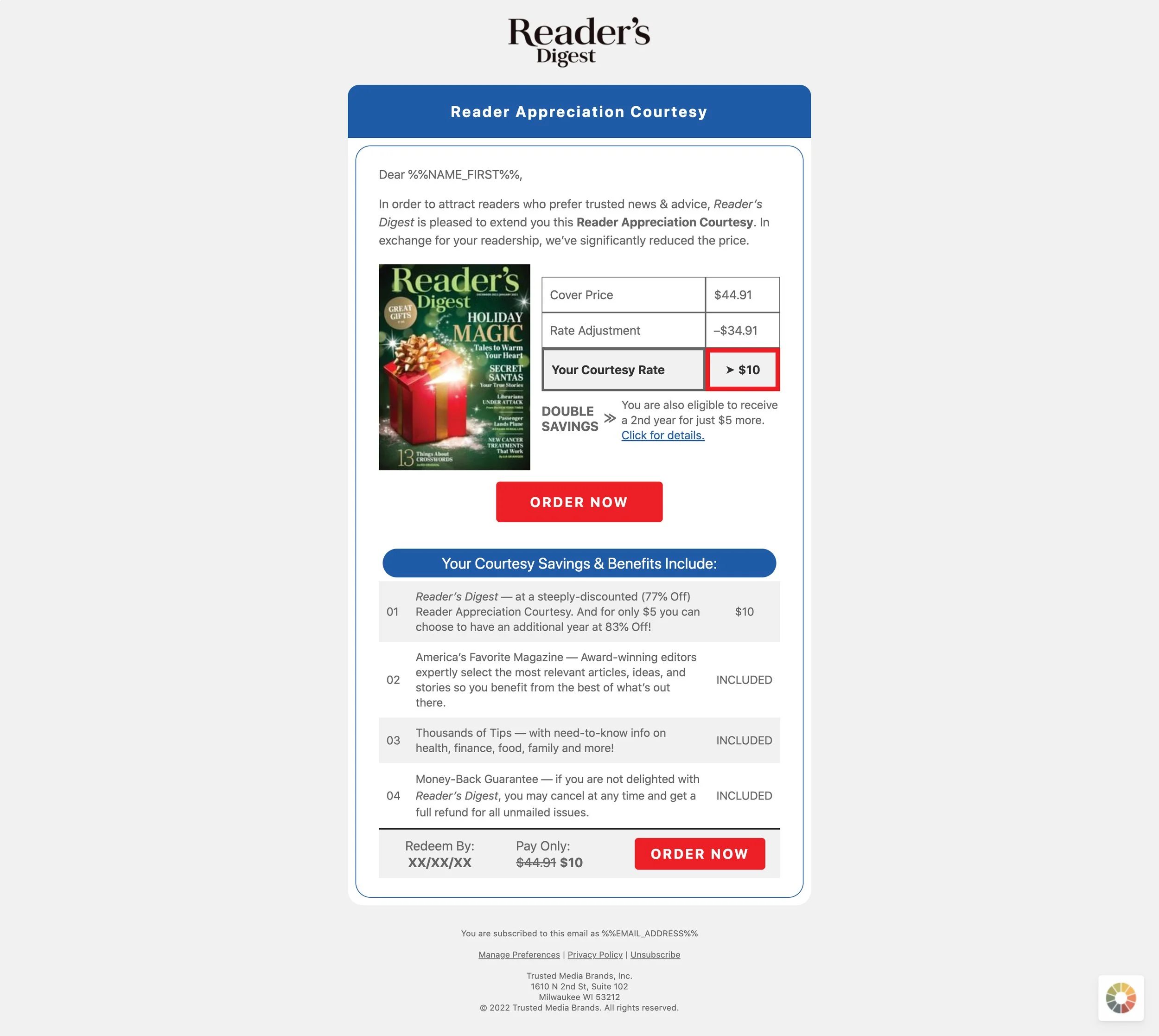 This is a video created for Facebook as part of a campaign for a 99¢ magazine offer. I wrote the video captions and the post copy. I also wrote an email below as part of the campaign.
